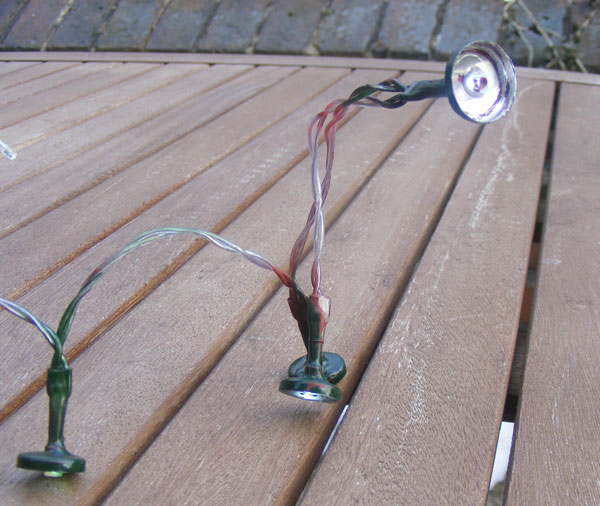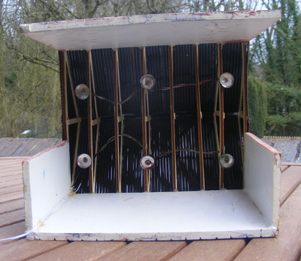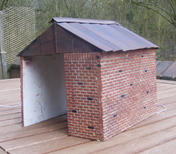 The next stage was to sort out the internal lighting, which needed to go in before the roof sheets went on. Ian Shields had found some nice bright sets of LEDs which run on 4.5 volts and are DIRT cheap (like £1-50) so these were used............
