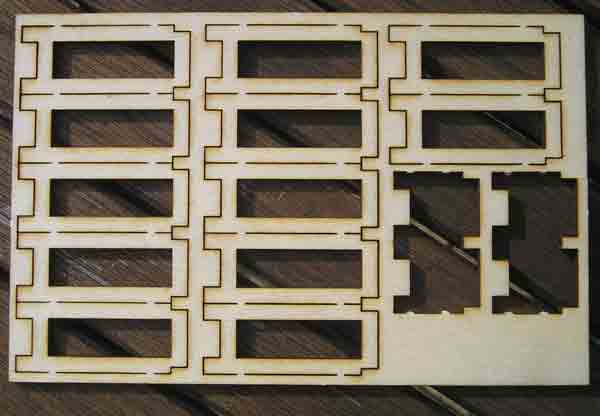 As the next stage in the MDLR's PW Dept train, I acquired a Triassic kit for the Hudson-built coach / riding van / tool van. The kit is made out of ply, lots of ply, all cut and detailed with lasers. Getting the parts out of the sheet is a simple "push out" exercise, rather like the cardboard kits you can buy for buildings in smaller scales. These particular bits are the supports for the workbenches, which I didn't use as I wanted a coach.